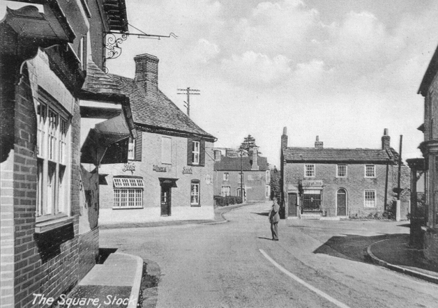 then The Cock with the Post Office in the background. On the right is a house which used to Upsons hardware shop. Charles Phillips 2000 |