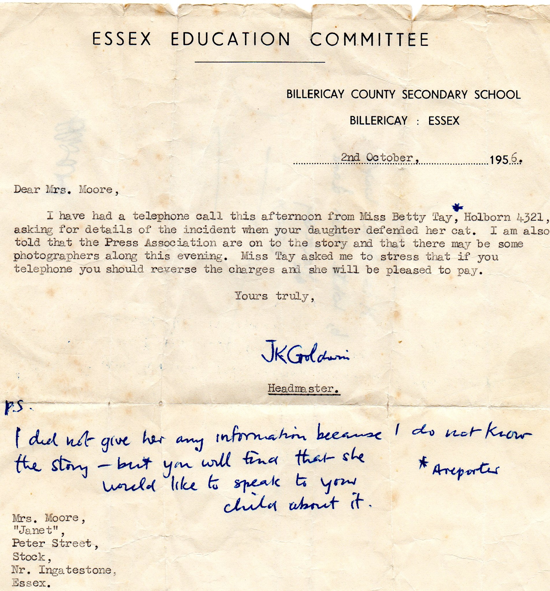 who's cat it was had called the press to tell them of the incident. The Headteacher suggested that perhaps we ought to go home for the day and so the