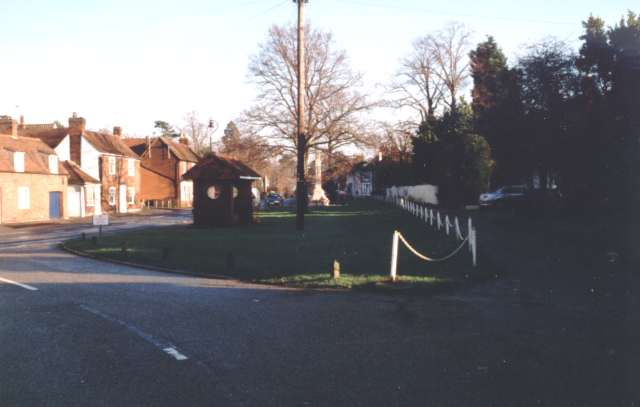 | The High Street in the mid 1930s Pre bus shelter. The middle house on the left was demolished in early 1960s. | ||
