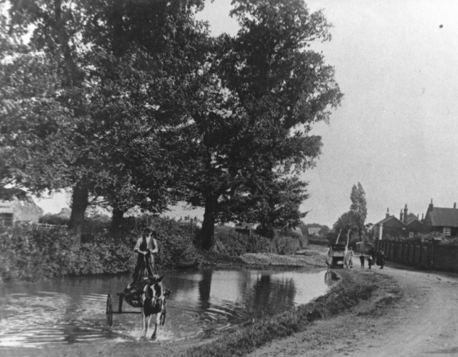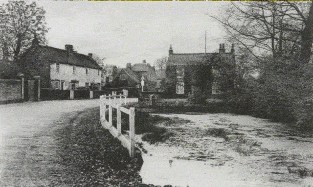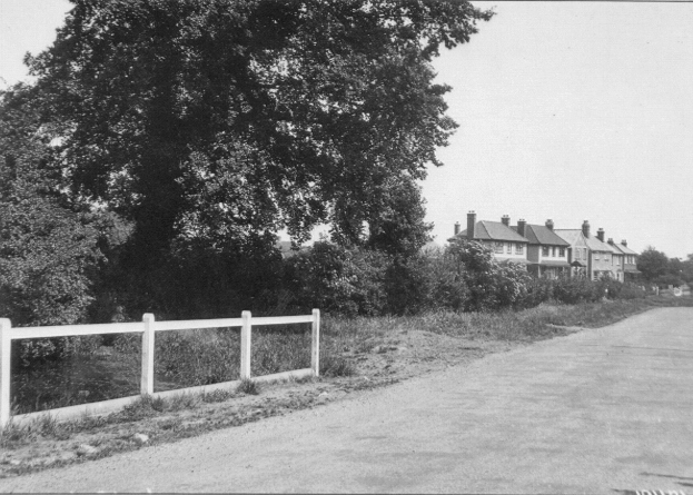 Towards the Village, the weir pond with Moat House to the right and Hope Farm to left.